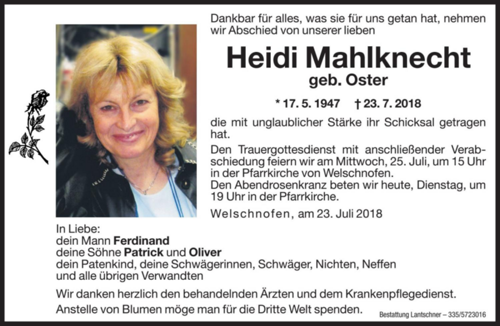 Anstelle von Blumen möge man für die Dritte Welt spenden.