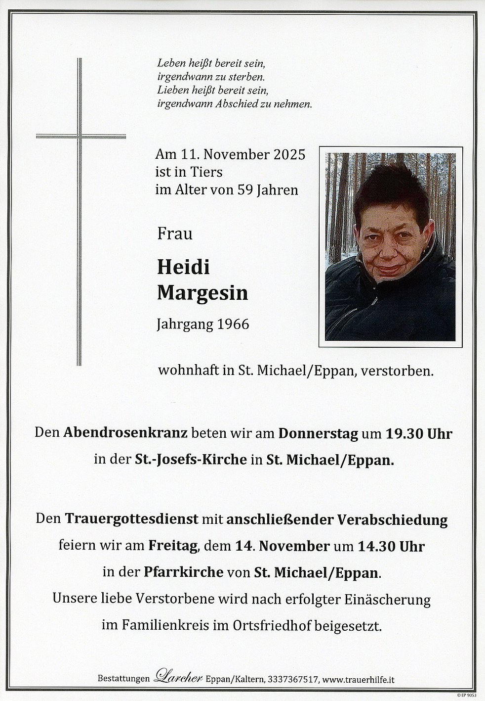 Trauerfeier: 14.11. - 14:30 Uhr Pfarrkirche St. Michael/Eppan