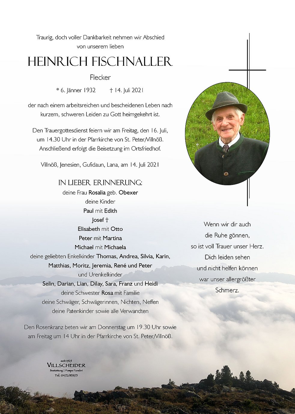 Begräbnisgottesdienst: 16.07. - 14:30 Uhr St. Peter/Villnöß