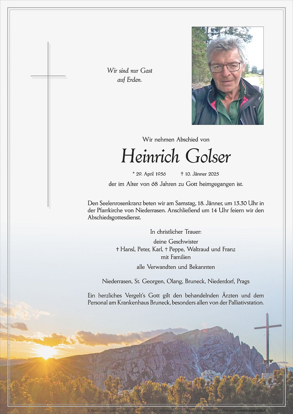 Den Seelenrosenkranz beten wir am Samstag, 18. Jänner, um 13.30 Uhr in der Pfarrkirche von Niederrasen. Anschließend um 14 Uhr feiern wir den Abschiedsgottesdienst.