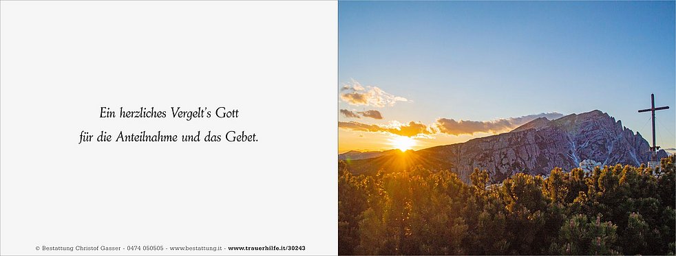 Ein herzliches Vergelt’s Gott gilt den behandelnden Ärzten und dem Personal am Krankenhaus Bruneck, besonders allen von der Palliativstation.