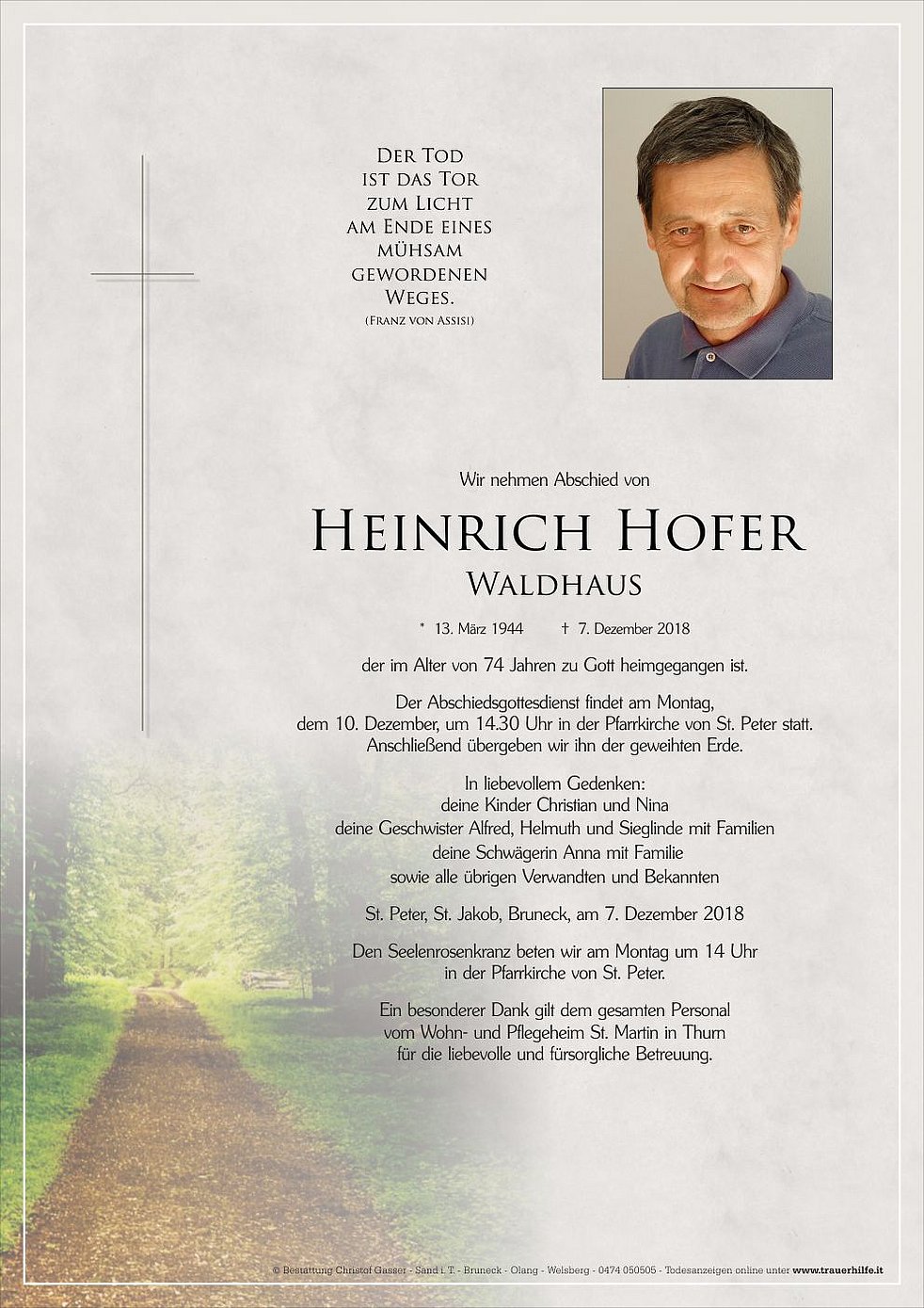 der im Alter von 74 Jahren zu Gott heimgegangen ist.