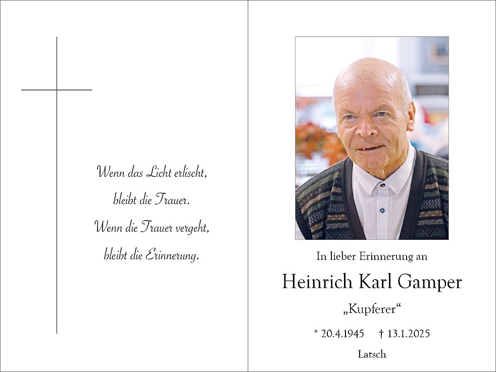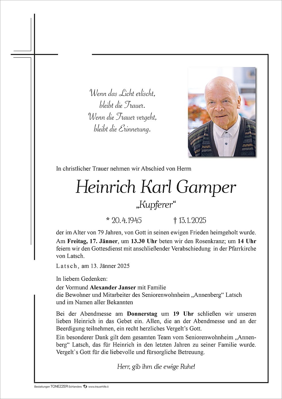 Lieber Heiner i glab, dass deine Schwester Rosl iaz a poor Johr auf di hort gwortet hot und sich gonz fescht auf des Wiedersehen mit dir gfreit hot. Herr gib ihm die ewige Ruhe.