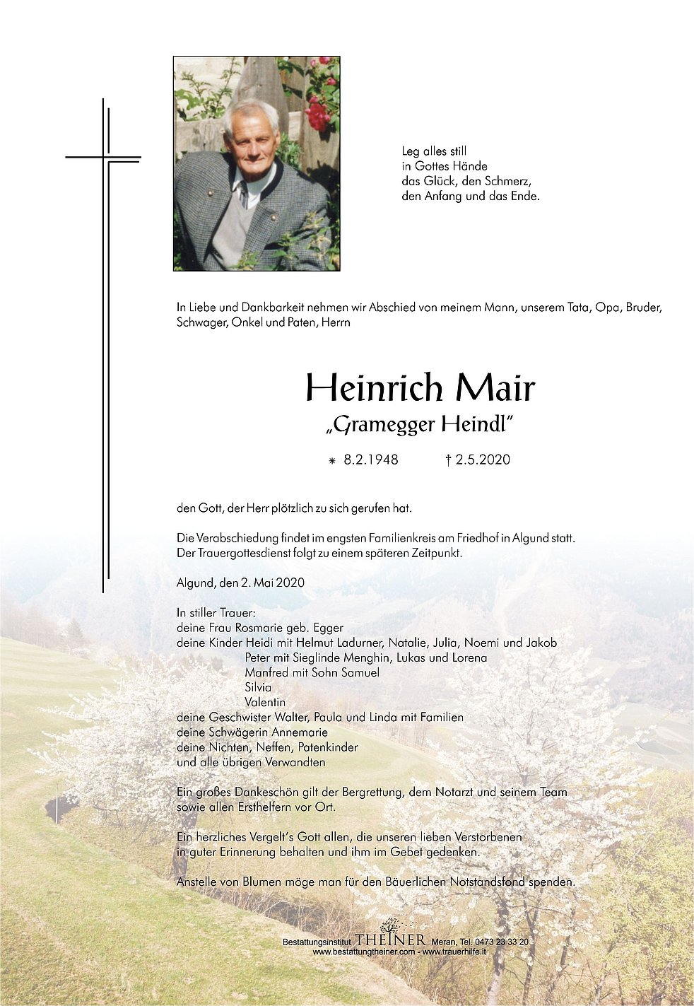 Die Verabschiedung findet im engsten Familienkreis am Friedhof in Algund statt.