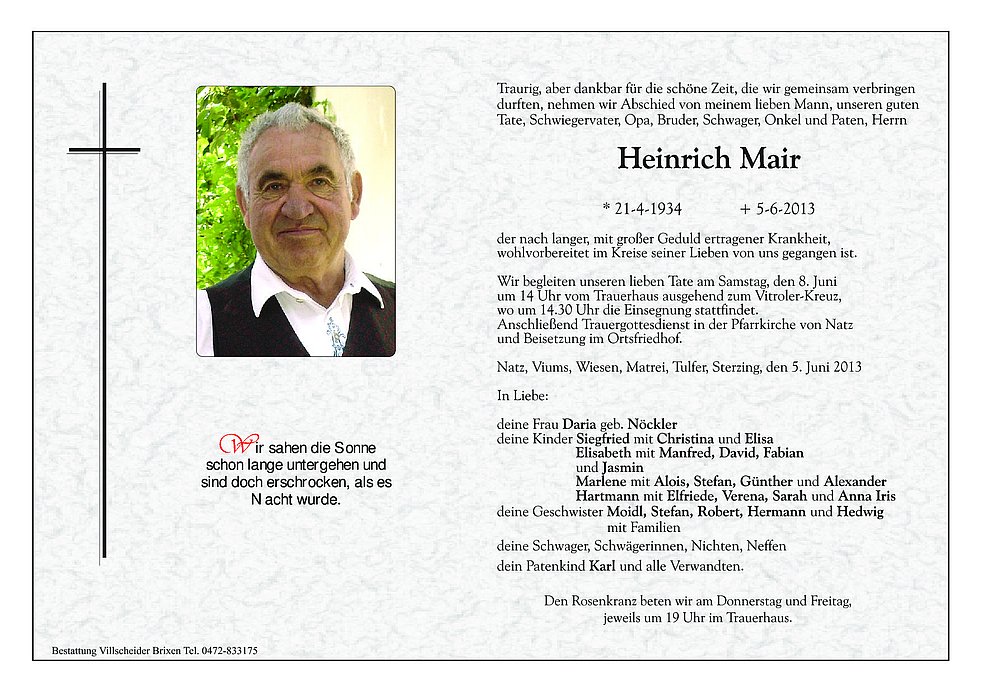 um 14 Uhr vom Trauerhaus ausgehend zum Vitroler-Kreuz,