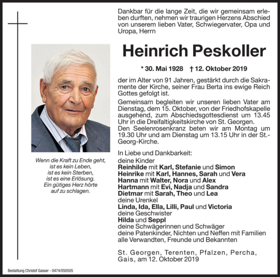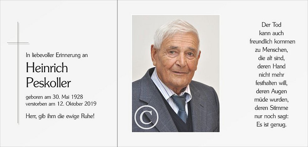 Gemeinsam begleiten wir unseren lieben Vater am Dienstag, dem 15. Oktober, von der Friedhofskapelle ausgehend, zum Abschiedsgottesdienst um 13.45 Uhr in die Dreifaltigkeitskirche von St. Georgen.
