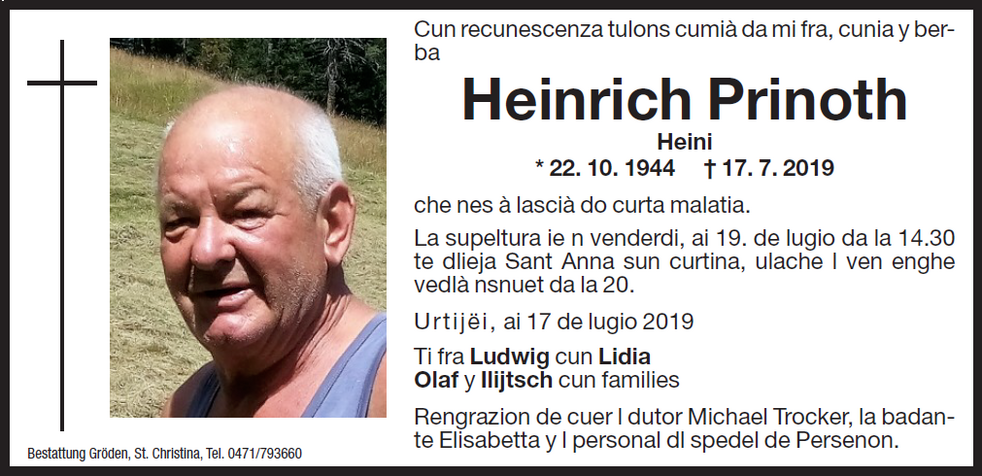 Rengrazion de cuer l dutor Michael Trocker, la badante Elisabetta y l personal dl spedel de Persenon.