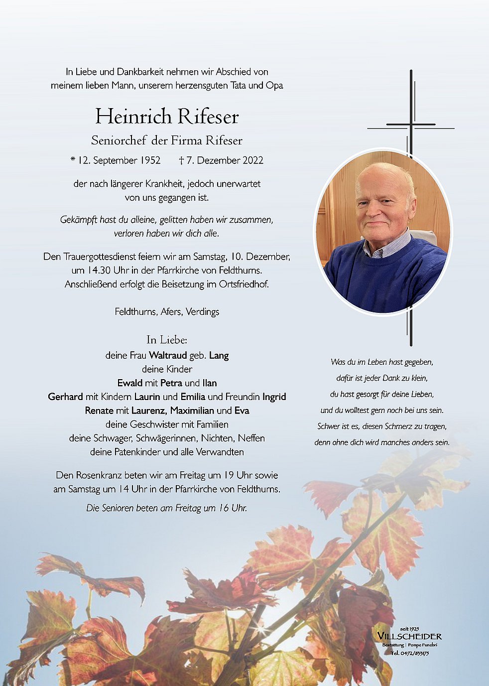 Liebe Waltraud mit Kindern, lieber Franz und Geschwister