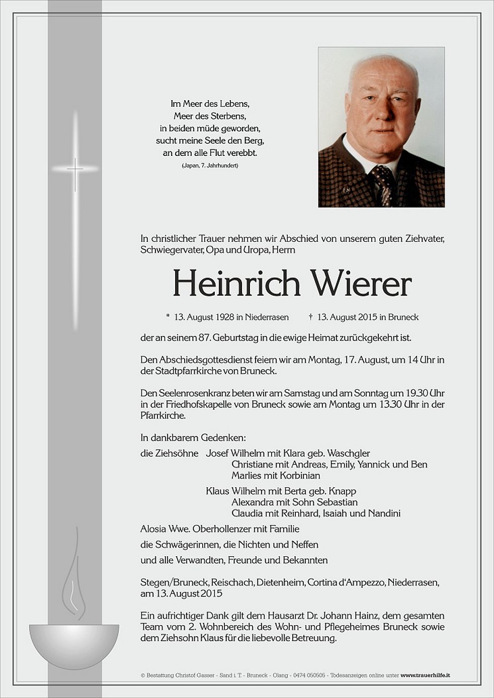 * 13. August 1928 in Niederrasen † 13. August 2015 in Bruneck