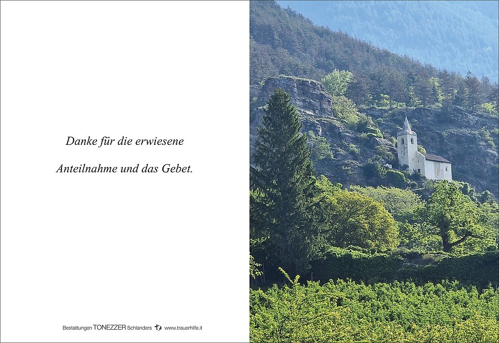 Ein besonderer Dank gilt dem gesamten Team der Abteilung Med. I des Krankenhauses von Schlanders sowie des Wohn- und Pflegeheimes St. Sisinius Laas für die liebevolle Betreuung.