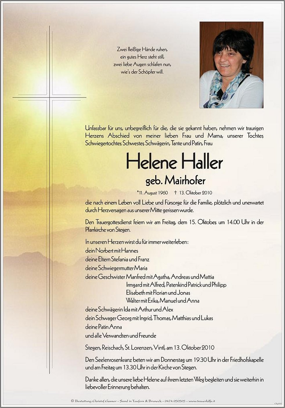 Danke allen, die unsere liebe Helene auf ihrem letzten Weg begleiten und sie weiterhin in liebevoller Erinnerung behalten.