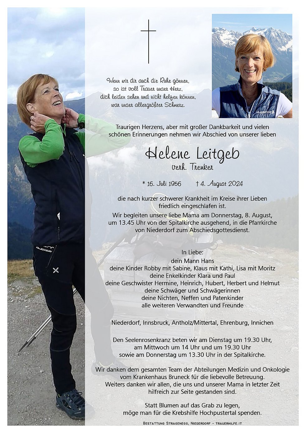 Liebe Trauerfamilie, wir wünschen euch viel Kraft den Verlust von Helene so gut wie möglich zu meistern. Herzliches Beileid euch allen.
