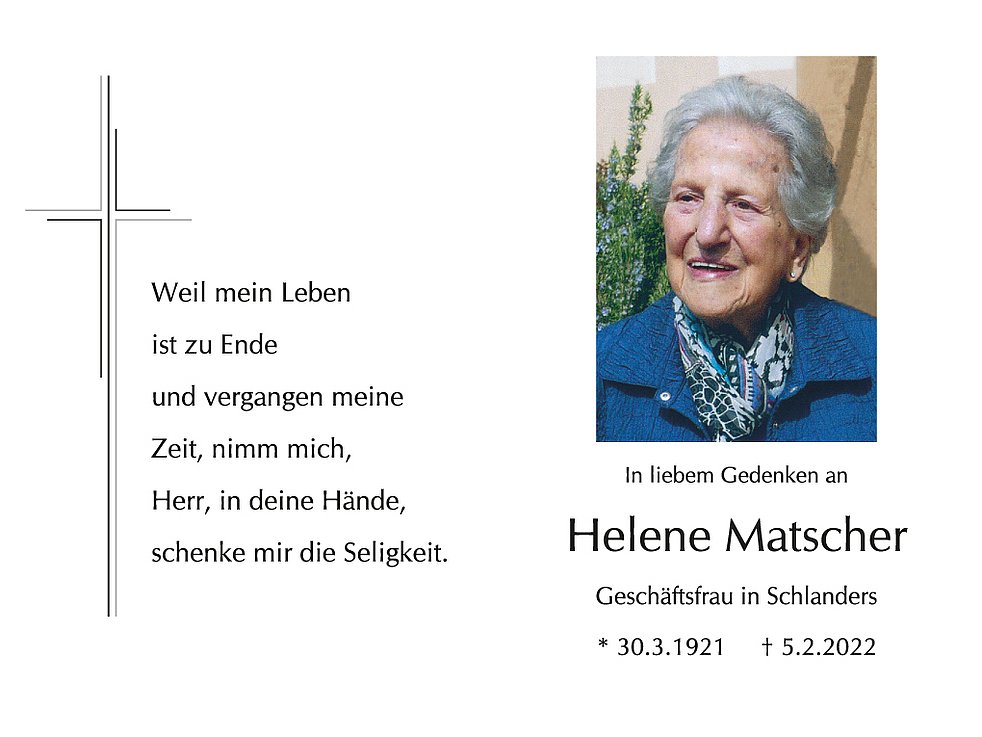 Ein herzlicher Dank geht an alle, die ihr ein so langes Leben ermöglicht haben, insbesonders ihrer Nichte Brigitte, dem Haus- und Krankenpflegedienst und dem Bürgerheim St. Nikolaus v.d.Flüe.
