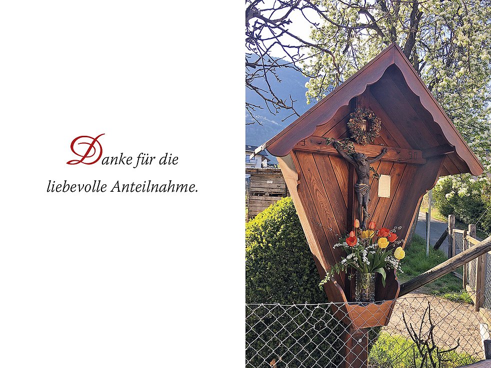 Ein besonderer Dank gilt dem gesamten Team des Wohn- und Pflegeheimes St. Pauls für die fürsorgliche Pflege und Begleitung, sowie Dr. Mittelberger und Dr. Tavernini für die medizinische Betreuung.