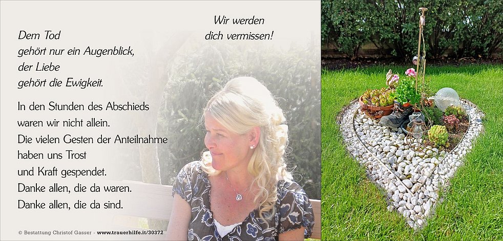 Traurig, aber mit vielen schönen Erinnerungen nehmen wir Abschied von meiner lieben Frau, Mama und Oma