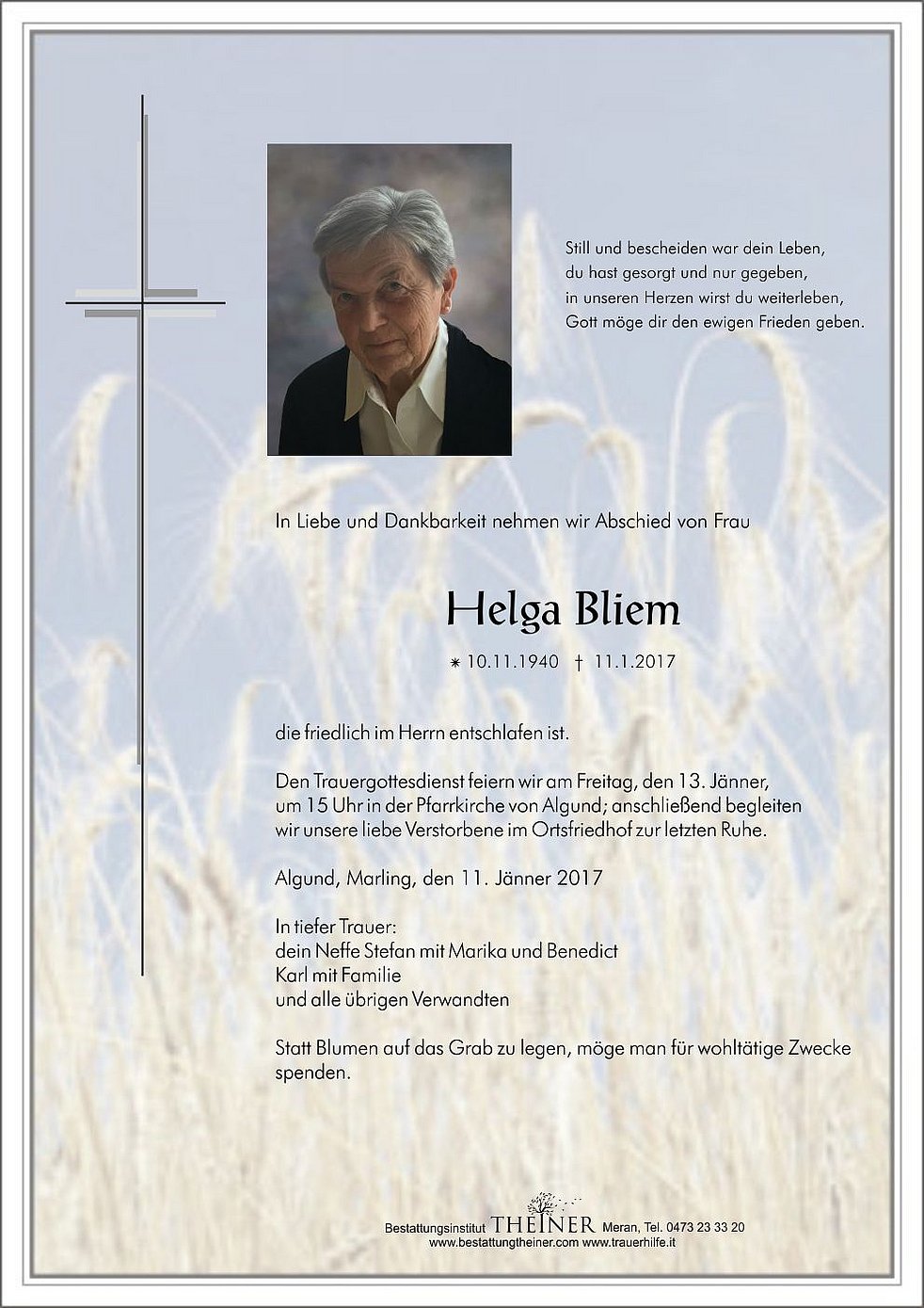 Den Trauergottesdienst feiern wir am Freitag, den 13. Jänner, um 15 Uhr in der Pfarrkirche von Algund; anschließend begleiten wir unsere liebe Verstorbene im Ortsfriedhof zur letzten Ruhe.