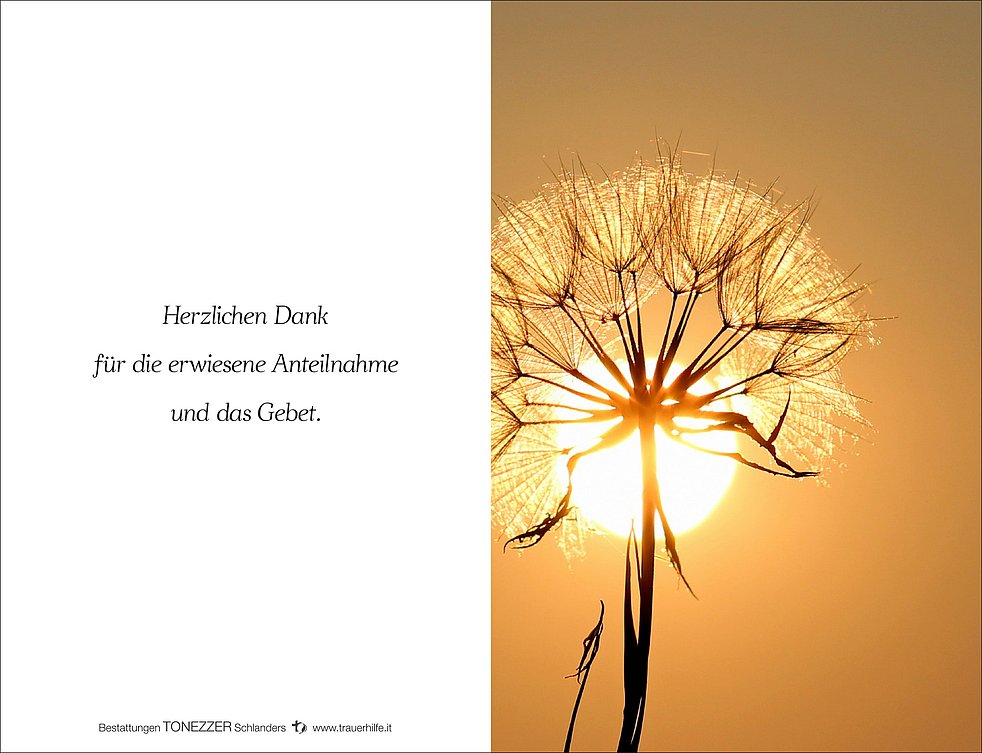 Ein besonderer Dank gilt unserer Pflegerin Tudorita, dem Hauskrankenpflegedienst vom Sprengel Obervinschgau sowie der Abteilung Palliativ vom Krankenhaus Meran für die liebevolle und fürsorgliche Betreuung.