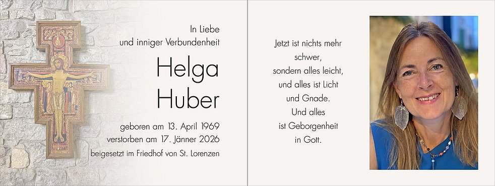 Unsere liebe Helga ist ab Montagnachmittag in der Friedhofskapelle von St. Lorenzen aufgebahrt.