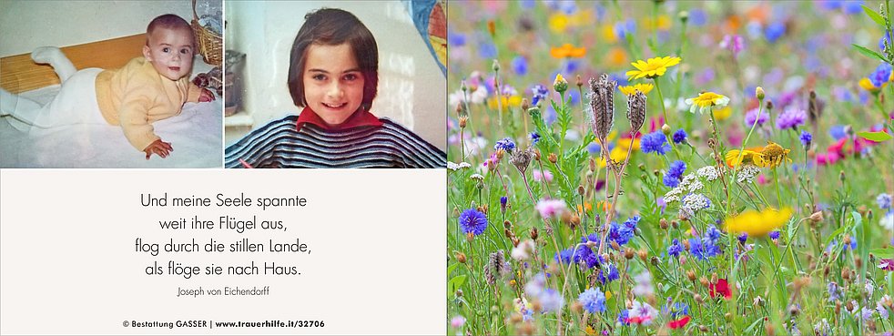 Wir danken den Ärzten und dem Pflegepersonal der Palliativabteilung Martins-brunn. Ein herzlicher Dank für die liebevolle Betreuung geht an das gesamte Team vom Palliativdienst am Krankenhaus Bruneck, besonders an Frau Dr. Monika Hilber und Cousin Dr. Anton Huber.