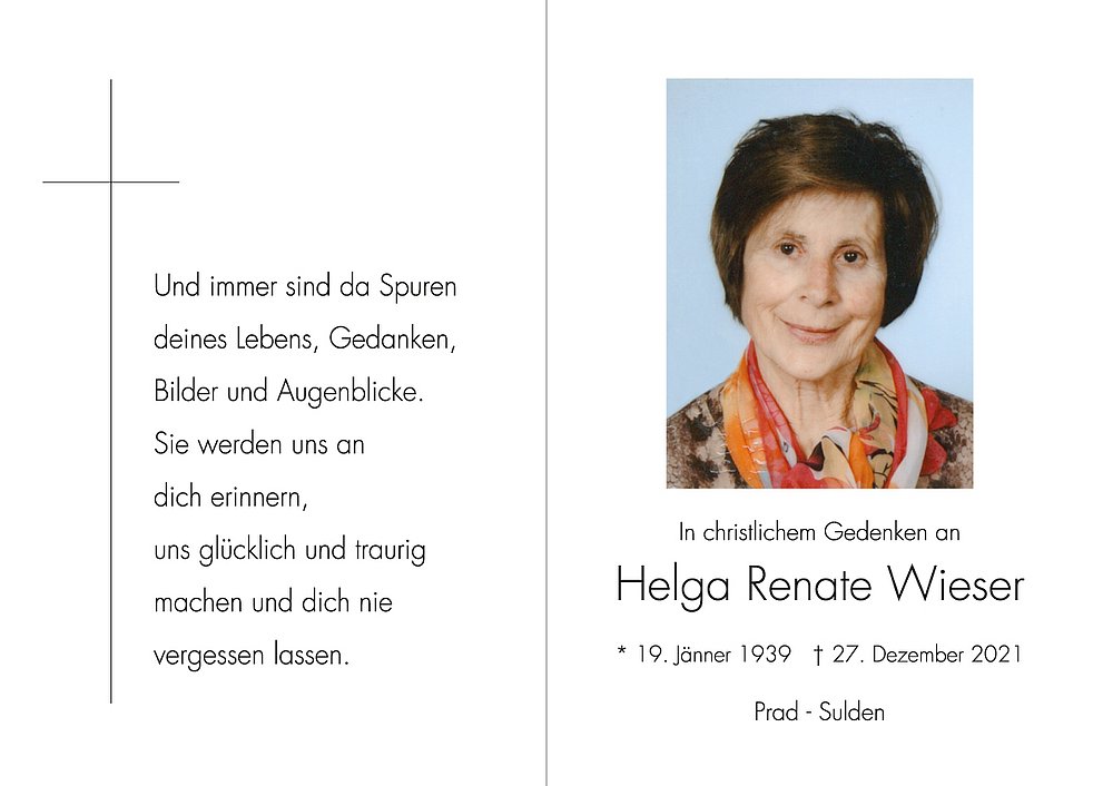 Die Urnenbeisetzung findet zu einem späteren Zeitpunkt im Familienkreis im Ortsfriedhof von Sulden statt.