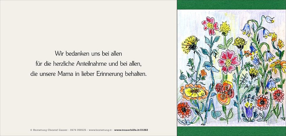 Dankbar für alles, was sie uns gegeben hat an Liebe, Güte und Fürsorge, nehmen wir traurigen Herzens Abschied von meiner lieben Frau, unserer Mama, Schwiegermutter und Oma, Frau