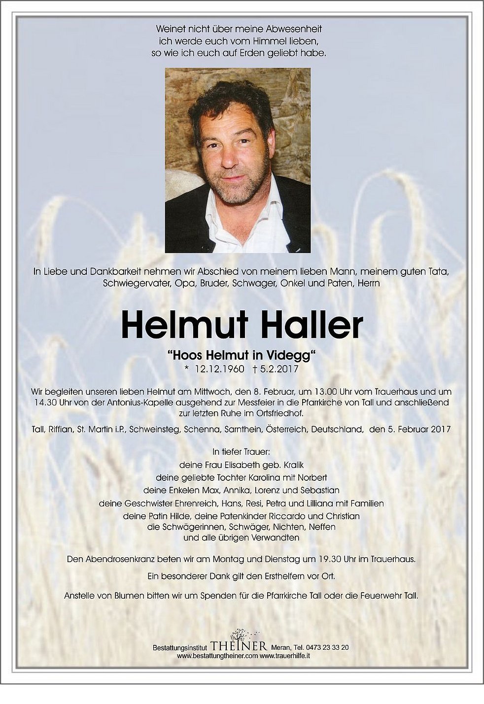 Anstelle von Blumen bitten wir um Spenden für die Pfarrkirche Tall oder die Feuerwehr Tall.