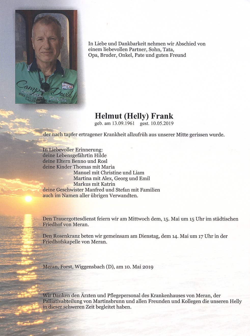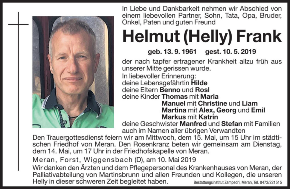 Liebe Rosl, lieber Benno, Manni und Stefan. Wir sind tief betroffen und traurig über den Tod vom Helly. Immer wieder werden Erinnerungen unser gemeinsamen Jugend wach. Unsere gemeinsamen Wanderungen, Feste und Feiern,unseren Spass. In tiefer Verbundenheit und Wissen, Helly immer in Erinnerung zu halten, drücken wir unsere aufrichtige Anteilnahme aus. Siglinde und Walter