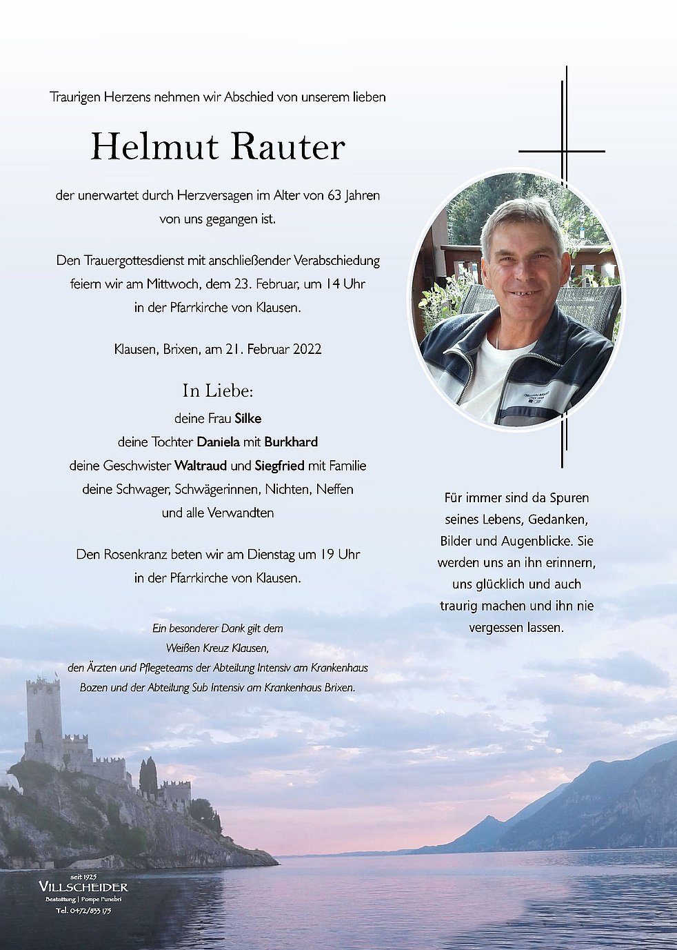 Schrecklich der ploetzliche Tod des lieben Helmut.