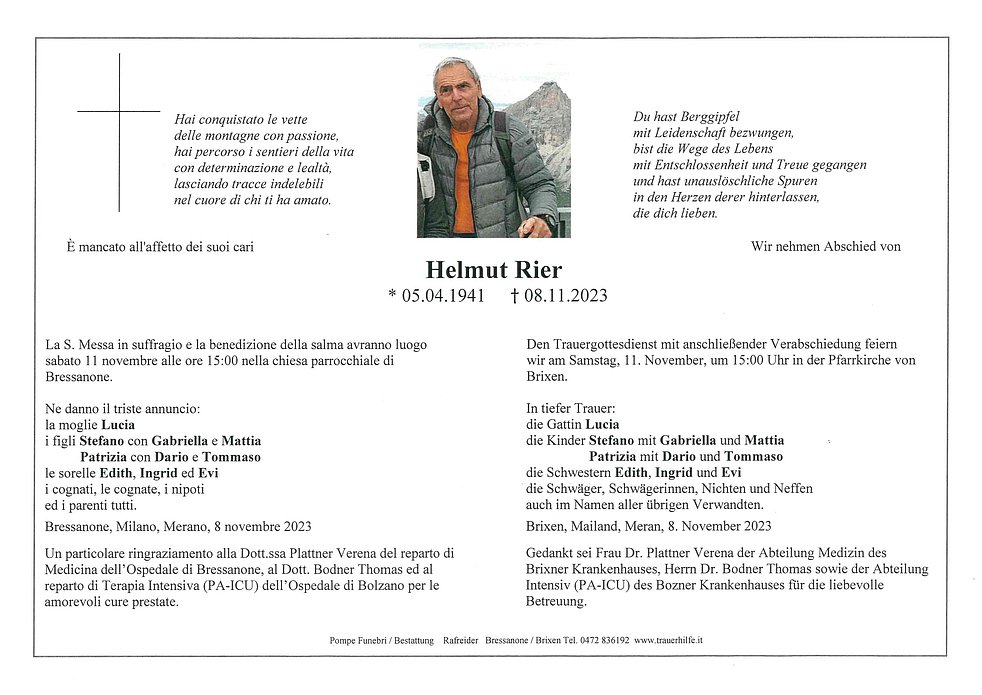 Sein Tod macht uns sehr traurig und lässt uns nur erahnen, wie sehr er euch fehlen wird.