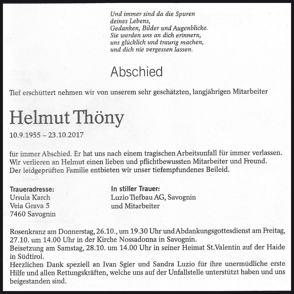 † 23.10.2017 in Savognin (CH)