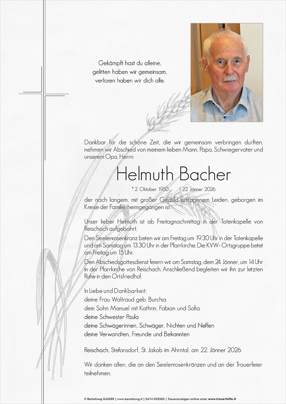 * 2. Oktober 1950 † 22. Jänner 2026