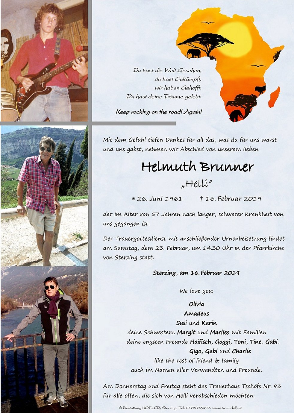 Der Trauergottesdienst mit anschließender Urnenbeisetzung findet am Samstag, dem 23. Februar, um 14.30 Uhr in der Pfarrkirche von Sterzing statt.