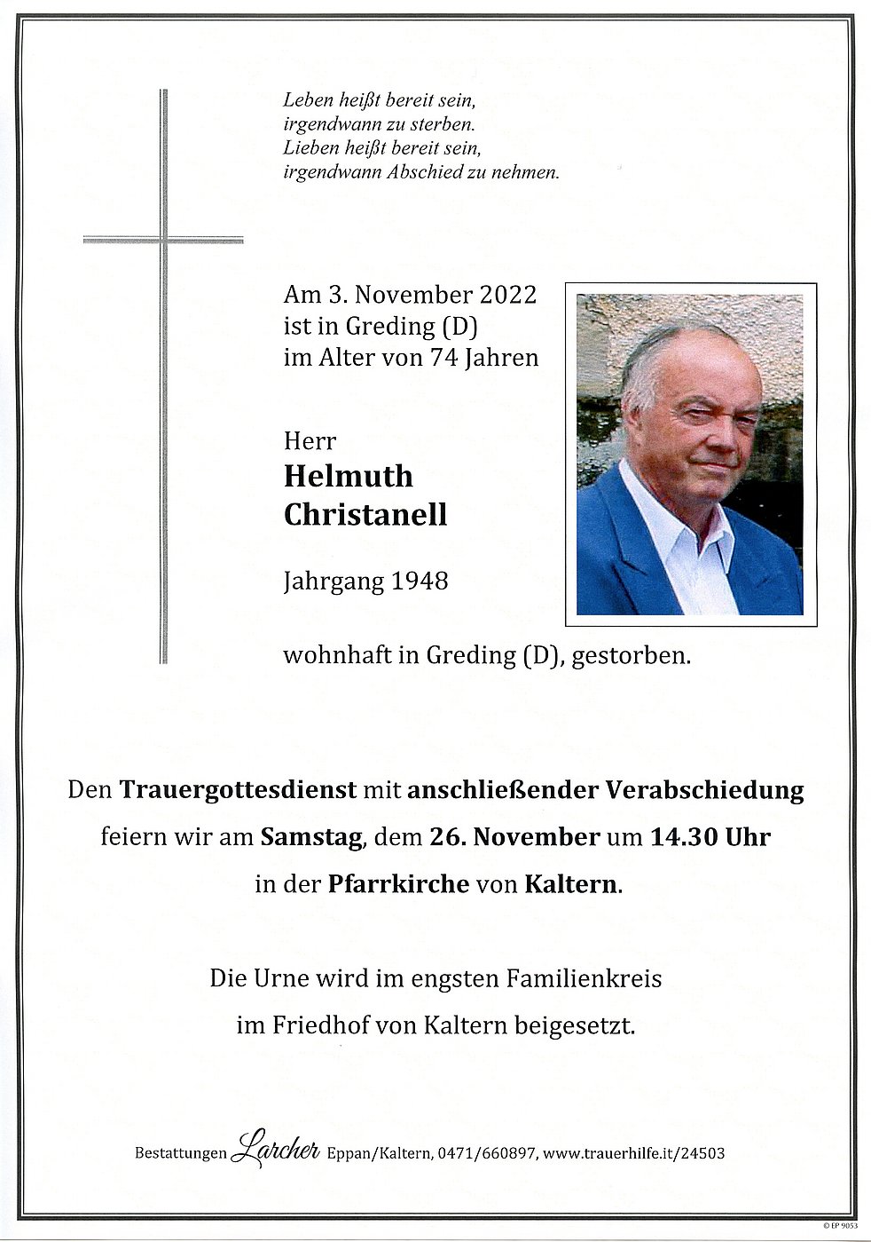 Die Trauerfeier findet am Samstag, 26. November um 14.30 Uhr in der Pfarrkirche von Kaltern statt.