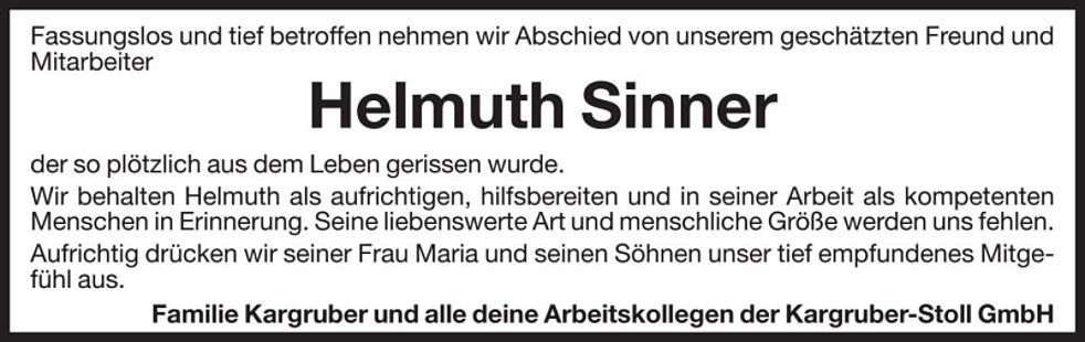 Allen, die an den Seelenrosenkränzen und an der Beerdigung von unserem Helmuth teilnehmen und ihn in lieber Erinnerung behalten, sagen wir ein herzliches Vergelt‘s Gott.