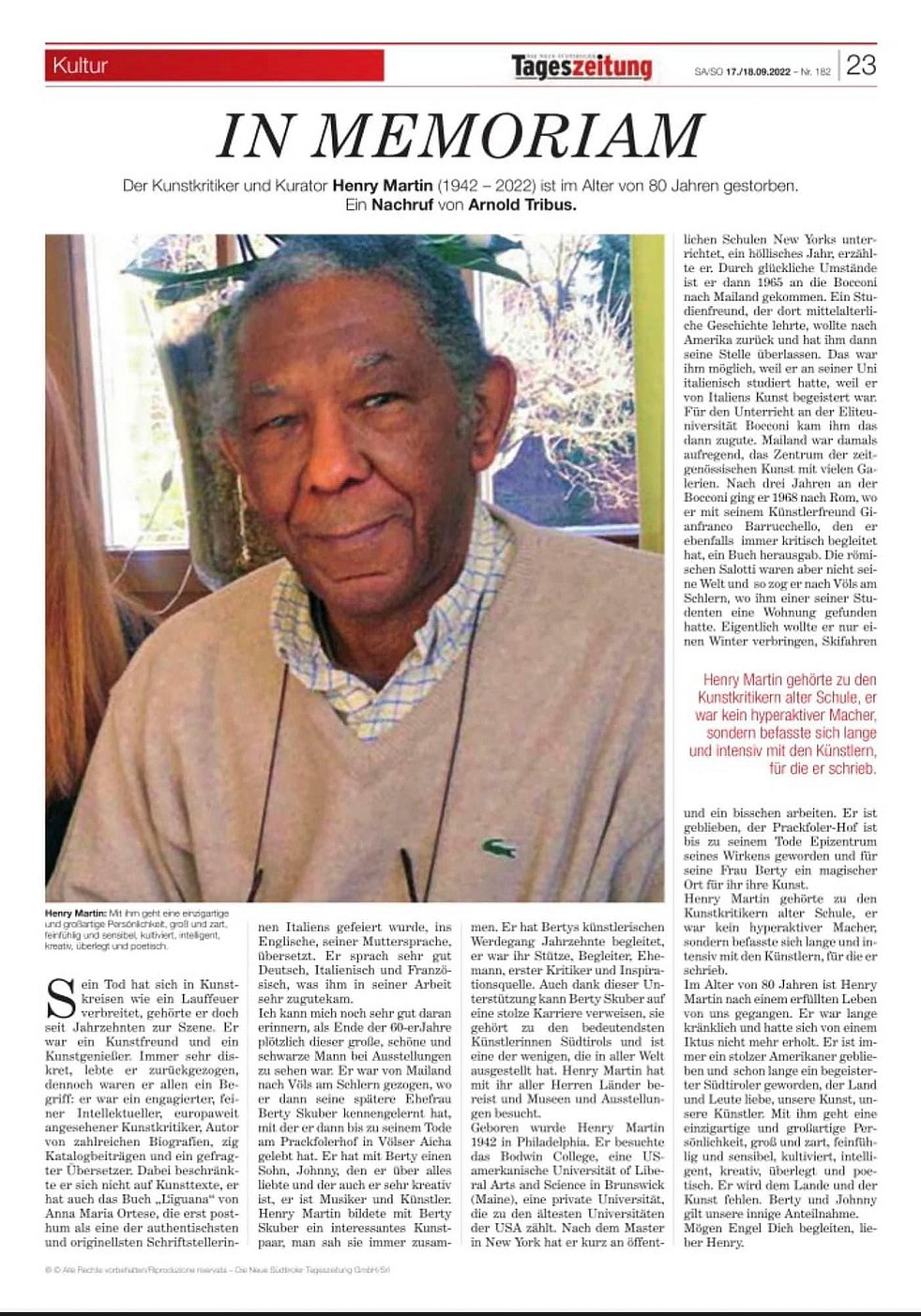 Vom 29. September 9 Uhr bis 30. September um 10 Uhr ist Henry am Friedhof Bozen zur persönlichen Verabschiedung aufgebahrt.
