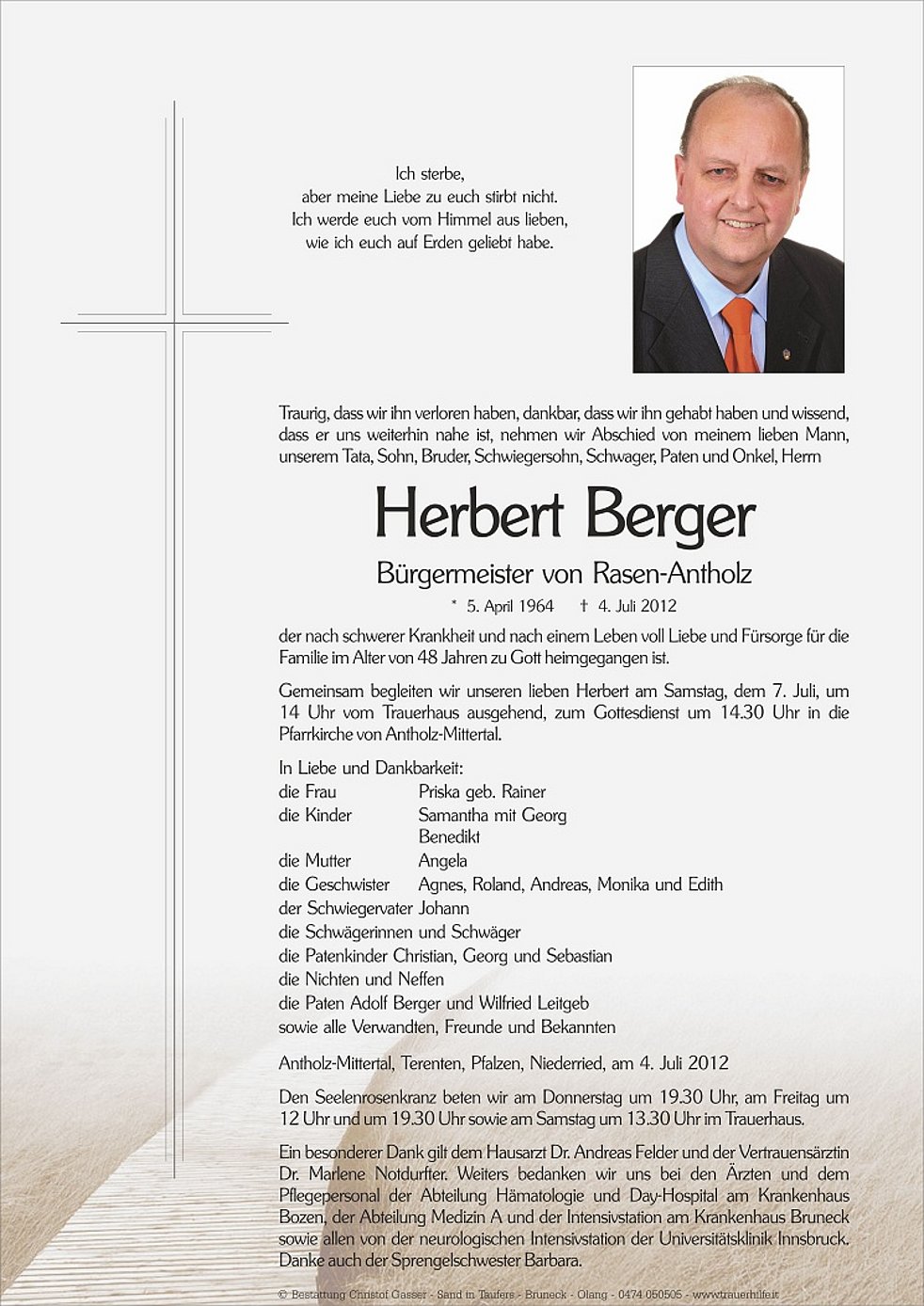 Traurig, dass wir ihn verloren haben, dankbar, dass wir ihn gehabt haben und wissend, dass er uns weiterhin nahe ist, nehmen wir Abschied von meinem lieben Mann, unserem Tata, Sohn, Bruder, Schwiegersohn, Schwager, Paten und Onkel, Herrn