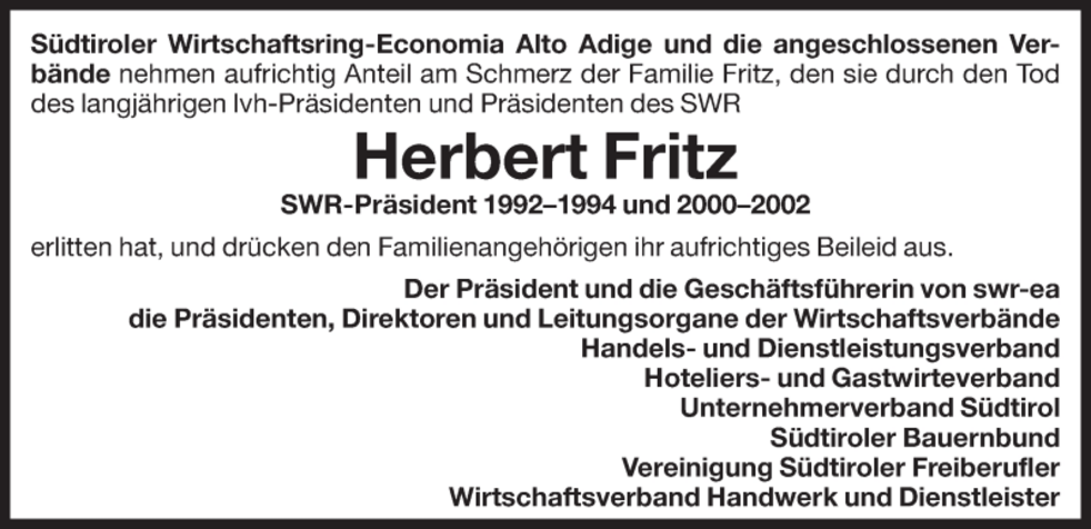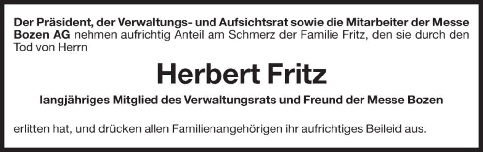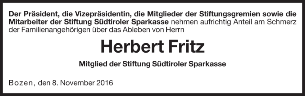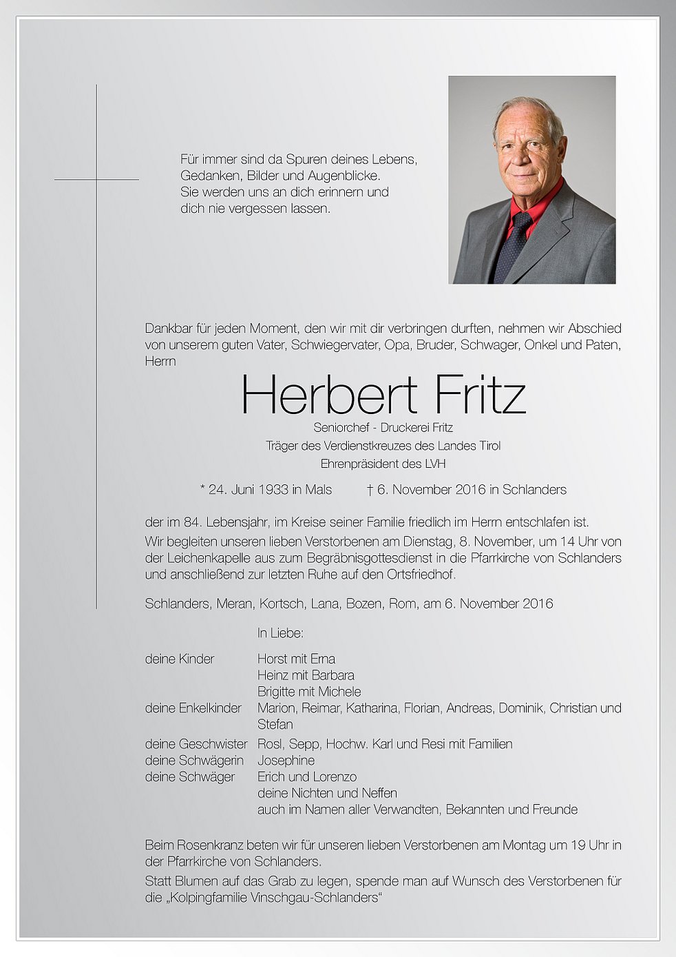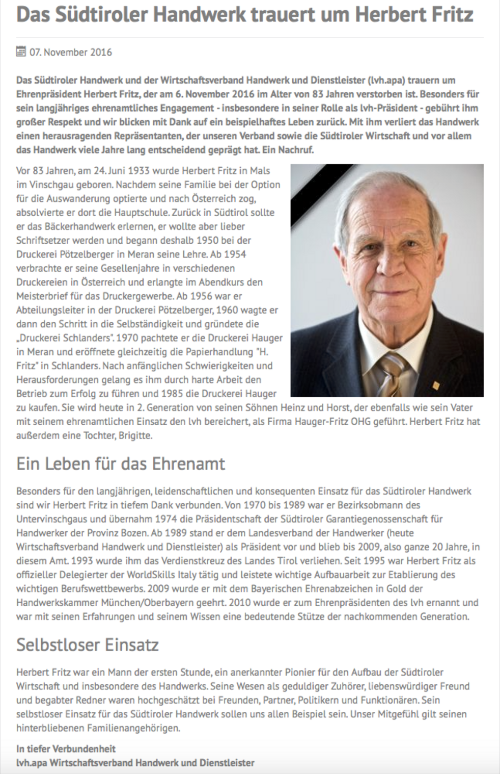 Statt Blumen auf das Grab zu legen, spende man auf Wunsch des Verstorbenen für die „Kolpingfamilie Vinschgau-Schlanders“.