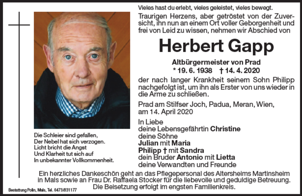 Der nach langer Krankheit seinem Sohn Philipp nachgefolgt ist,