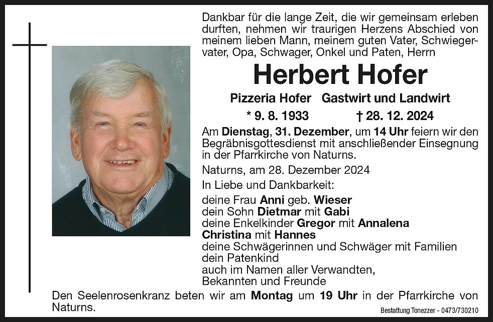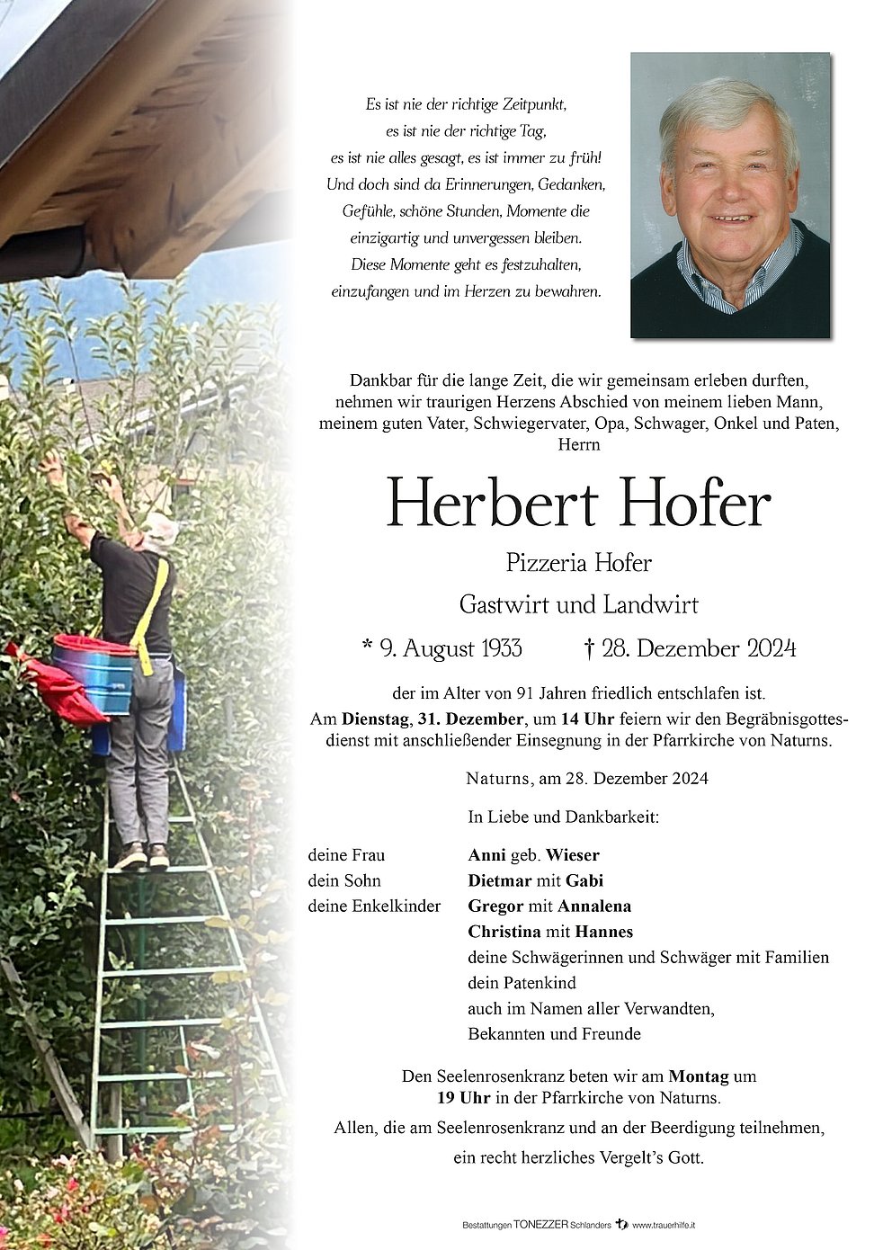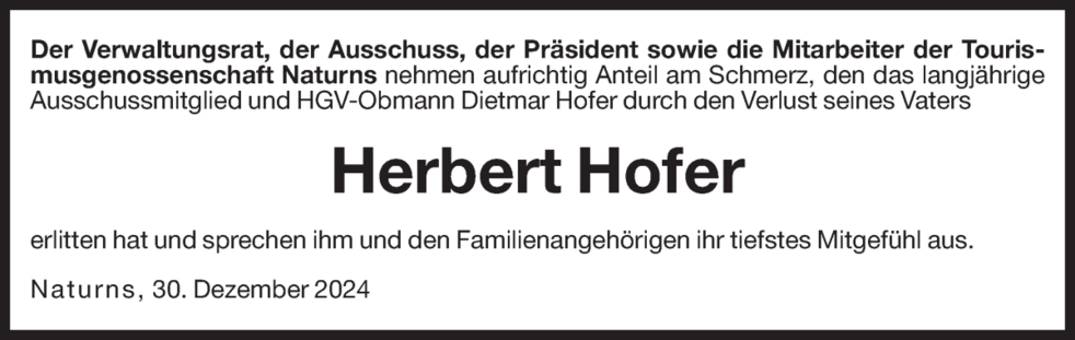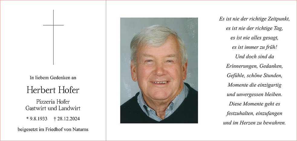 Mein Beileid 💐 an Familie Hofer. Werner Albrecht ~ Trögerstrasse Naturns