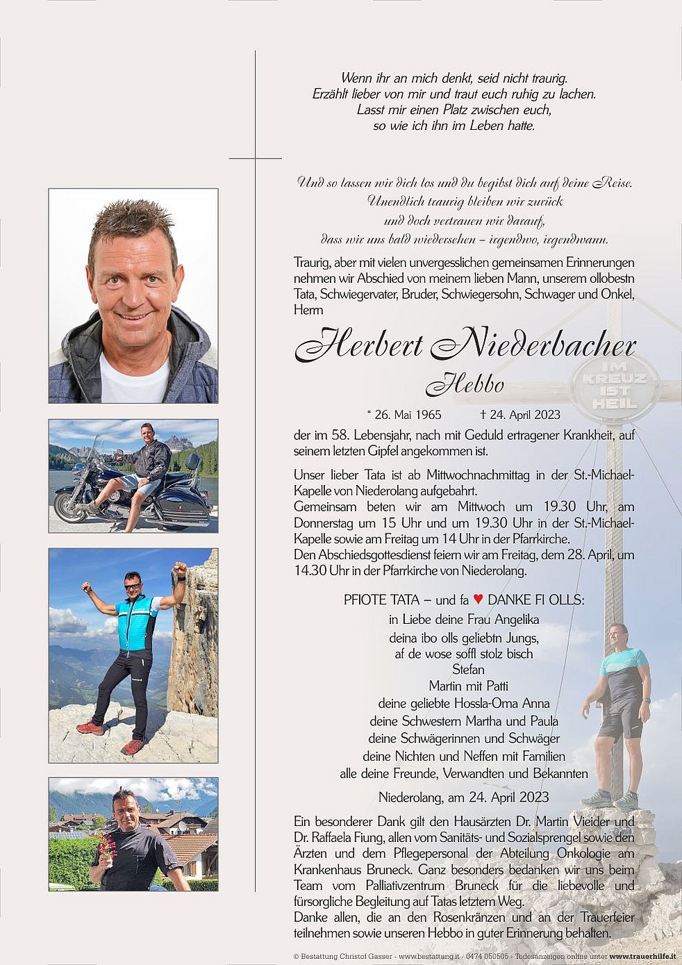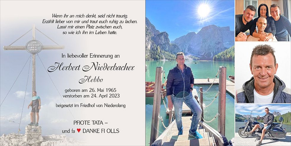 Traurig, aber mit vielen unvergesslichen gemeinsamen Erinnerungen nehmen wir Abschied von meinem lieben Mann, unserem ollobestn Tata, Schwiegervater, Bruder, Schwiegersohn, Schwager und Onkel, Herrn