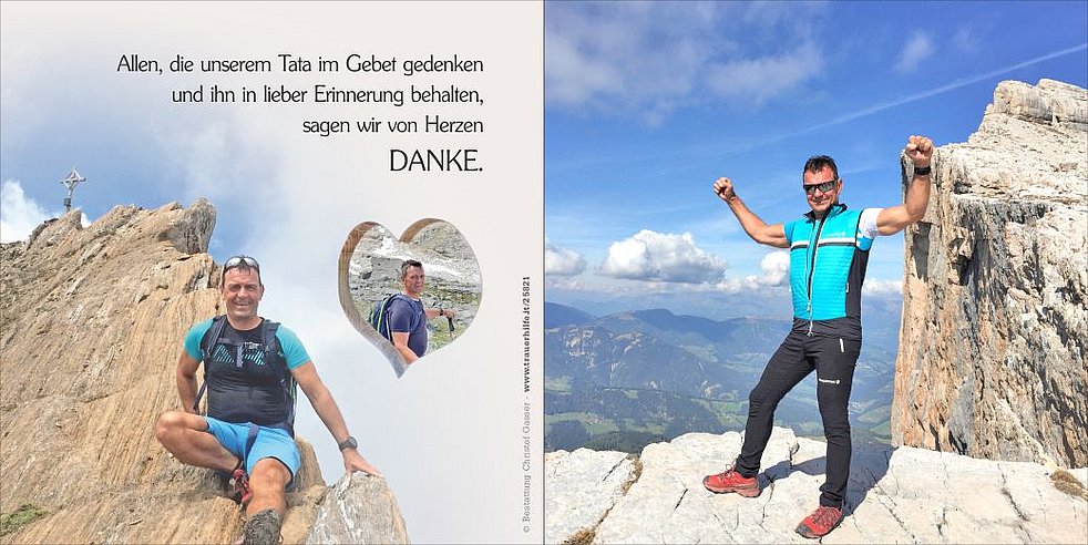 Dr. Raffaela Fiung, allen vom Sanitäts- und Sozialsprengel sowie den Ärzten und dem Pflegepersonal der Abteilung Onkologie am Krankenhaus Bruneck. Ganz besonders bedanken wir uns beim Team vom Palliativzentrum Bruneck für die liebevolle und fürsorgliche Begleitung auf Tatas letztem Weg.