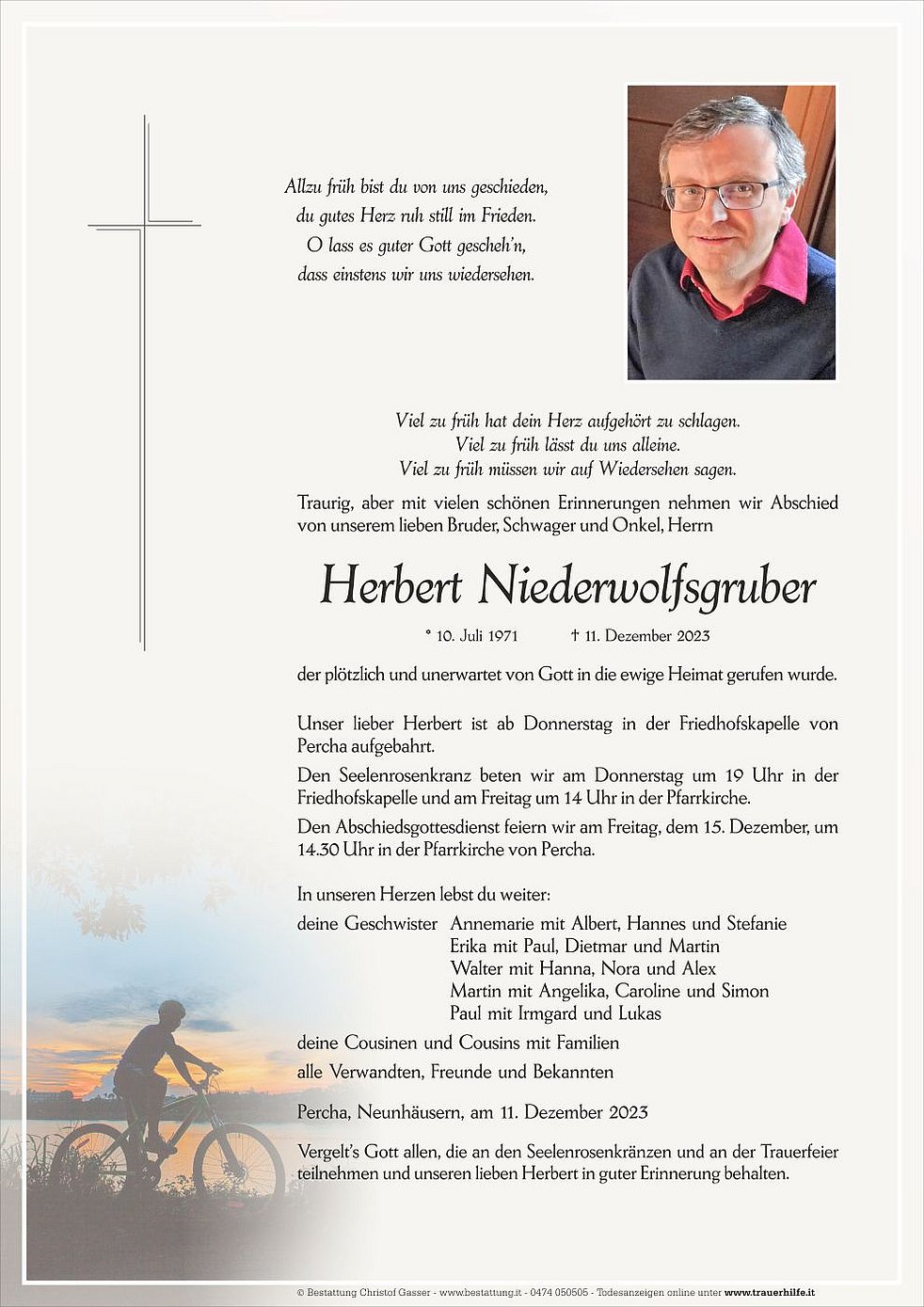 Vergelt’s Gott allen, die an den Seelenrosenkränzen und an der Trauerfeier teilnehmen und unseren lieben Herbert in guter Erinnerung behalten.