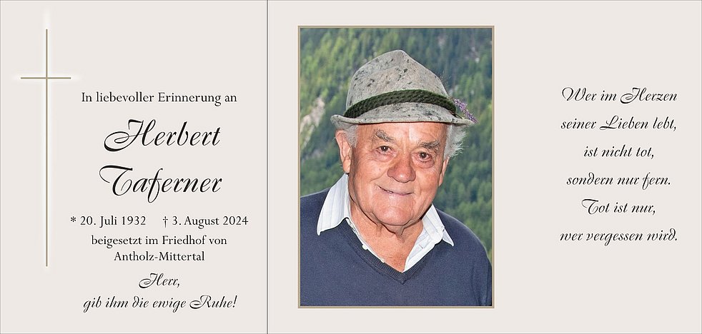 Den Trauergottesdienst feiern wir am Montag, dem 5. August, um 14 Uhr in der Pfarrkirche von Antholz-Mittertal.