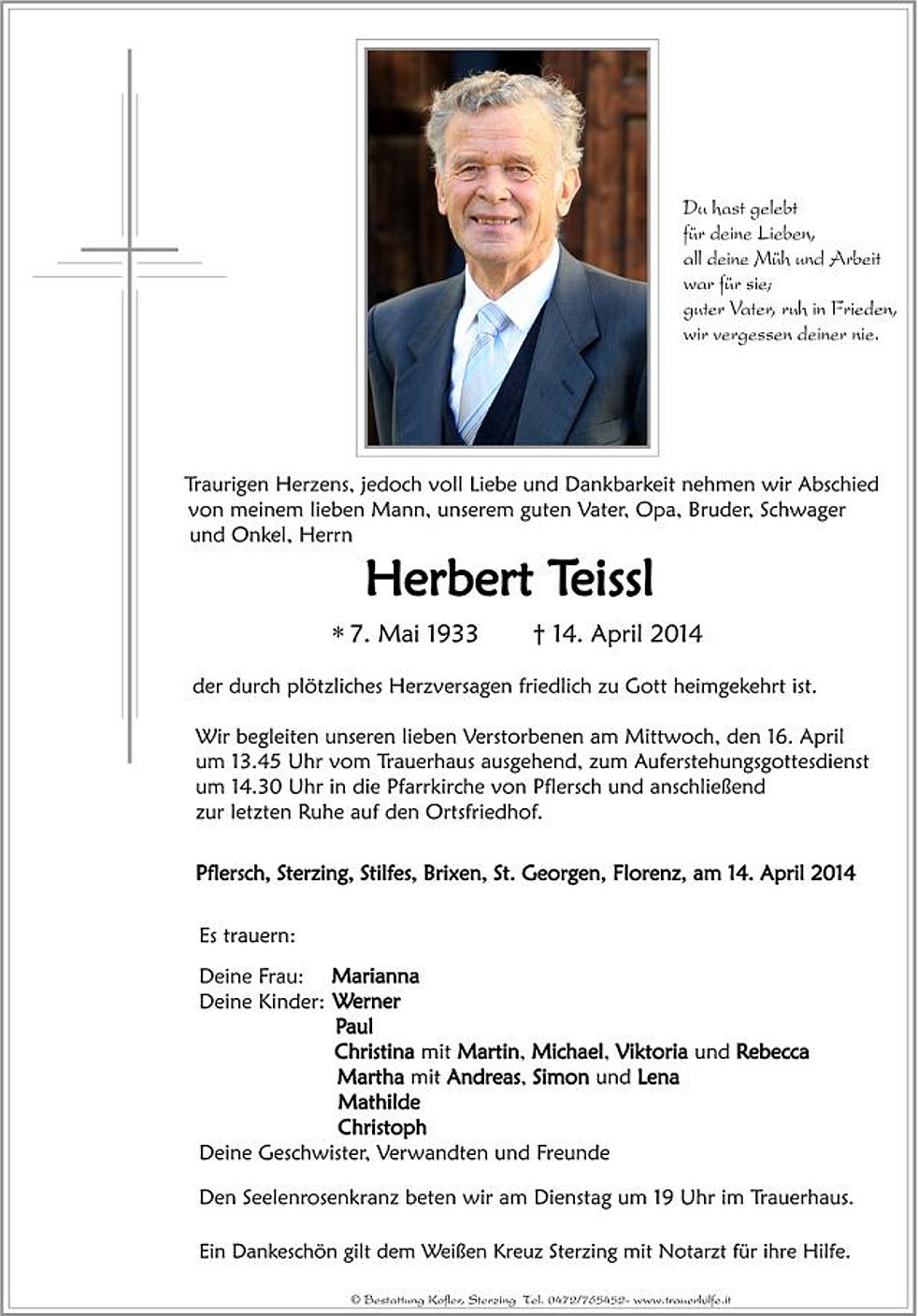 um 13.45 Uhr vom Trauerhaus ausgehend, zum Auferstehungsgottesdienst um 14.30 Uhr
