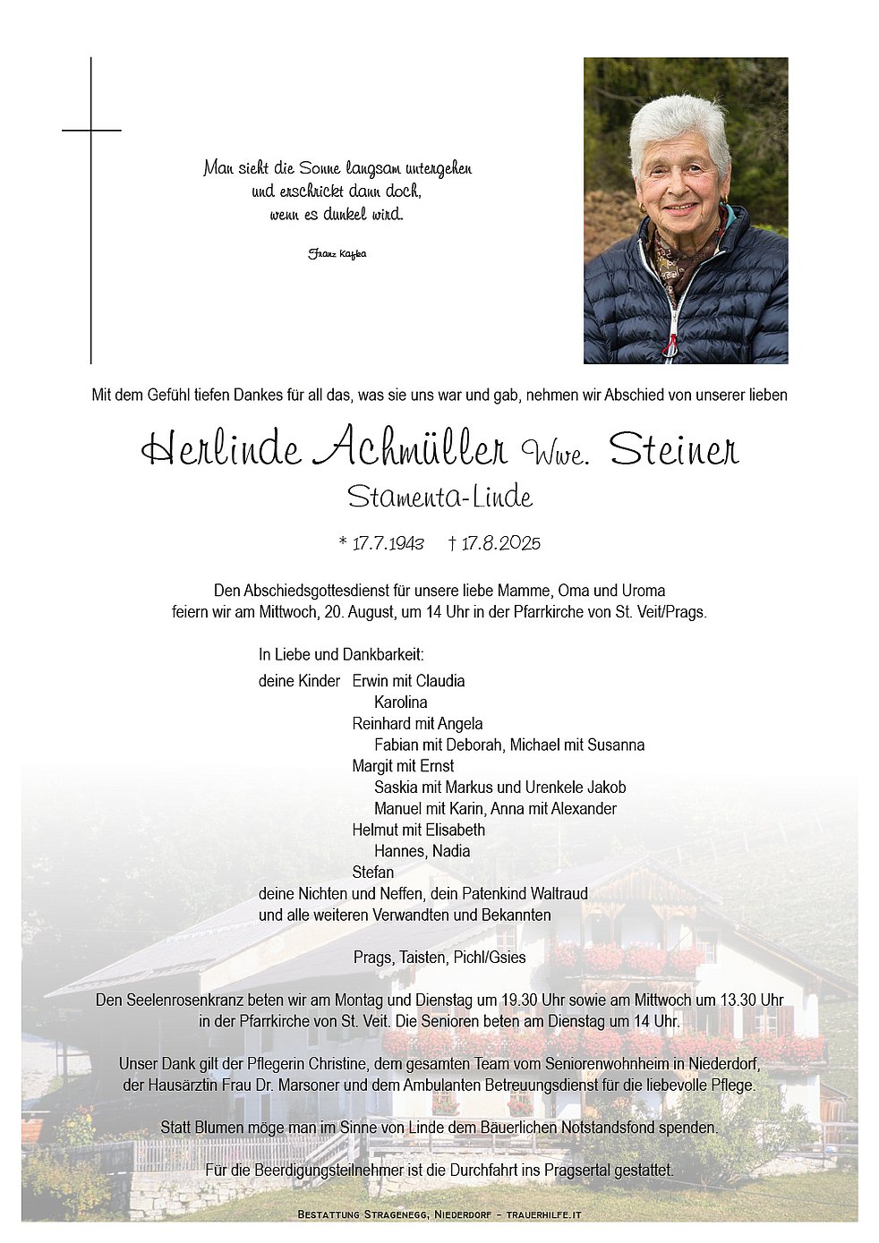 Trauerfeier: 20.08. - 14:00 Uhr St. Veit/Prags