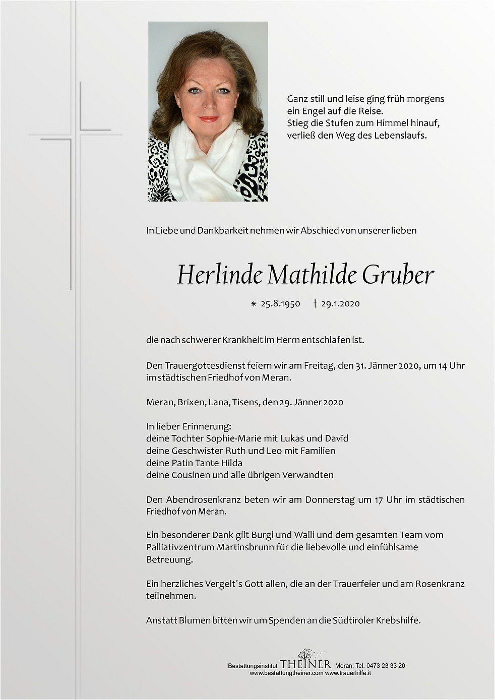 Den Trauergottesdienst feiern wir am Freitag, den 31. Jänner 2020, um 14 Uhr im städtischen Friedhof von Meran.