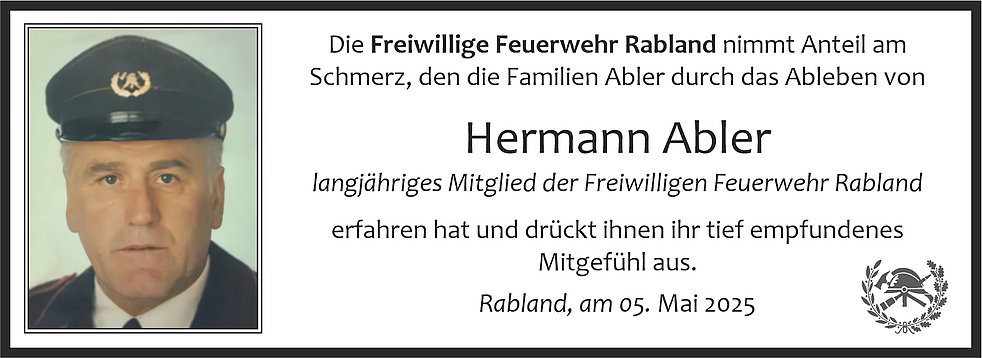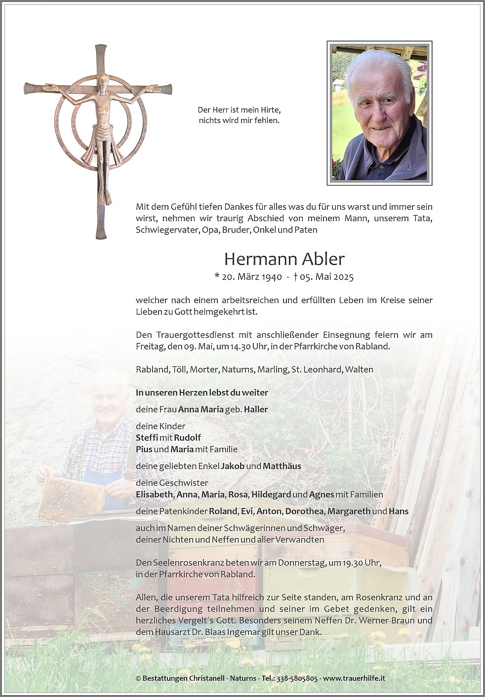 Den Trauergottesdienst mit anschließender Einsegnung feiern wir am Freitag, den 09. Mai, um 14.30 Uhr, in der Pfarrkirche von Rabland.