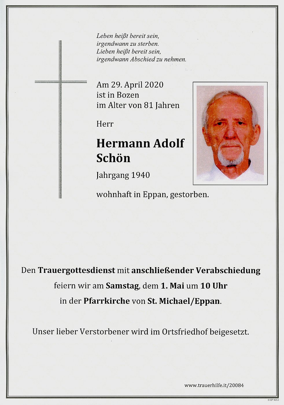 Trauerfeier: 01.05. - 10:00 Uhr Pfarrkirche St. Michael/Eppan