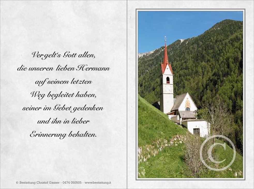 Gemeinsam begleiten wir unseren lieben Tate am Freitag, dem 20. Mai, von der Friedhofskapelle ausgehend, zum Abschiedsgottesdienst um 14.30 Uhr in die Pfarrkirche von Gais. Anschließend übergeben wir ihn der geweihten Erde.