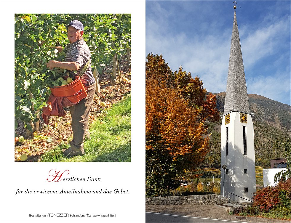 Ein besonderer Dank gilt dem Hausarzt Dr. Michele Fambri und dem gesamten Team vom Haus- und Krankenpflegedienst Mittelvinschgau für die liebevolle und fürsorgliche Betreuung.